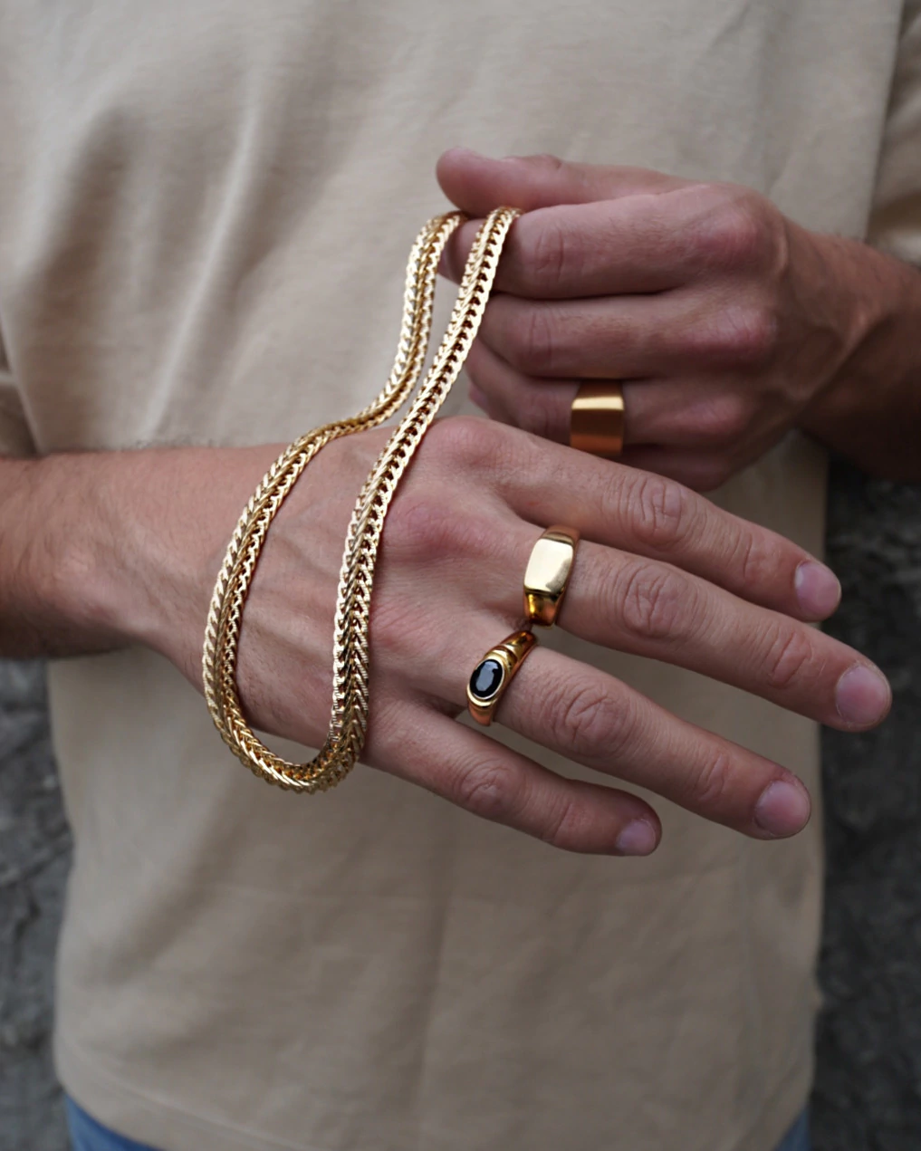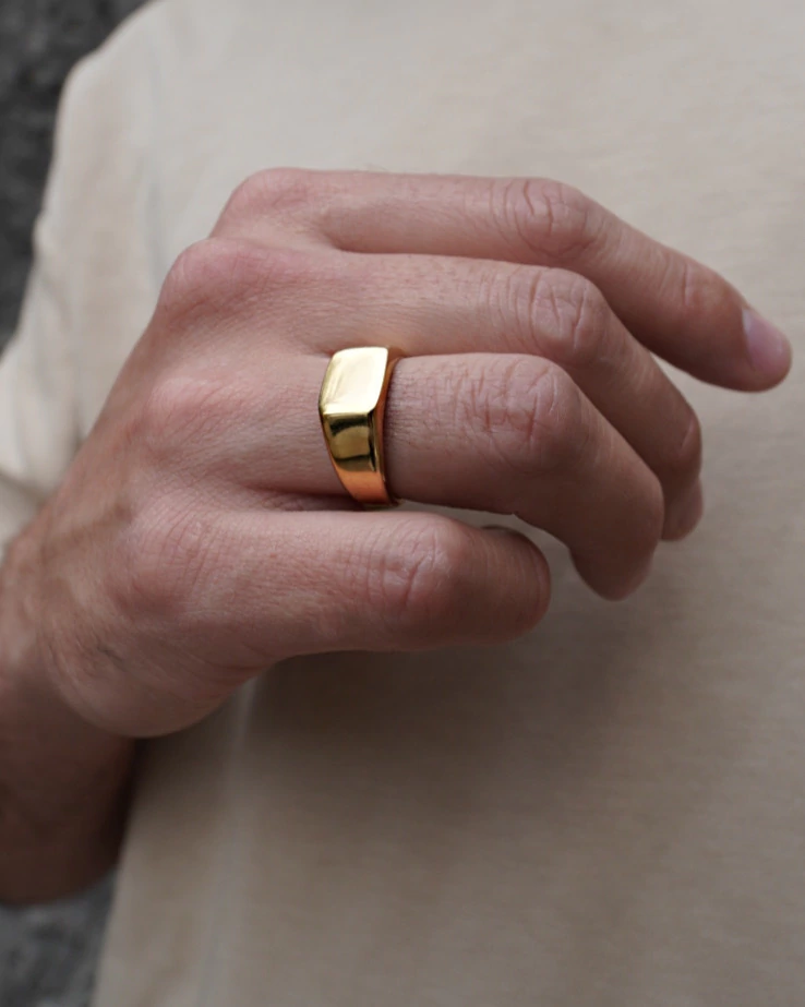Diseño masizo en acero quirúrgico tipo sello enchapado en oro de 18k.