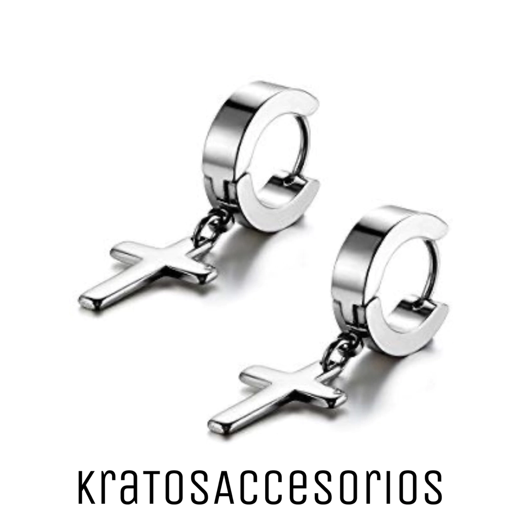 Argolla en acero quirúrgico con dije de cruz recta y cierre tipo click bañada en plata.