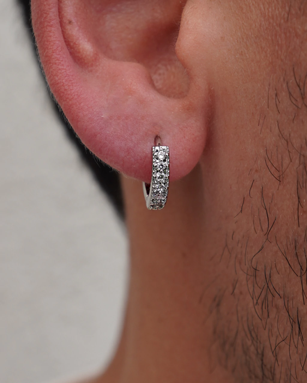 Esta argolla plateada tiene el equilibrio justo entre brillo y presencia: micro circonias incrustadas, diseño pulido y un tamaño ideal para destacar sin exagerar.
