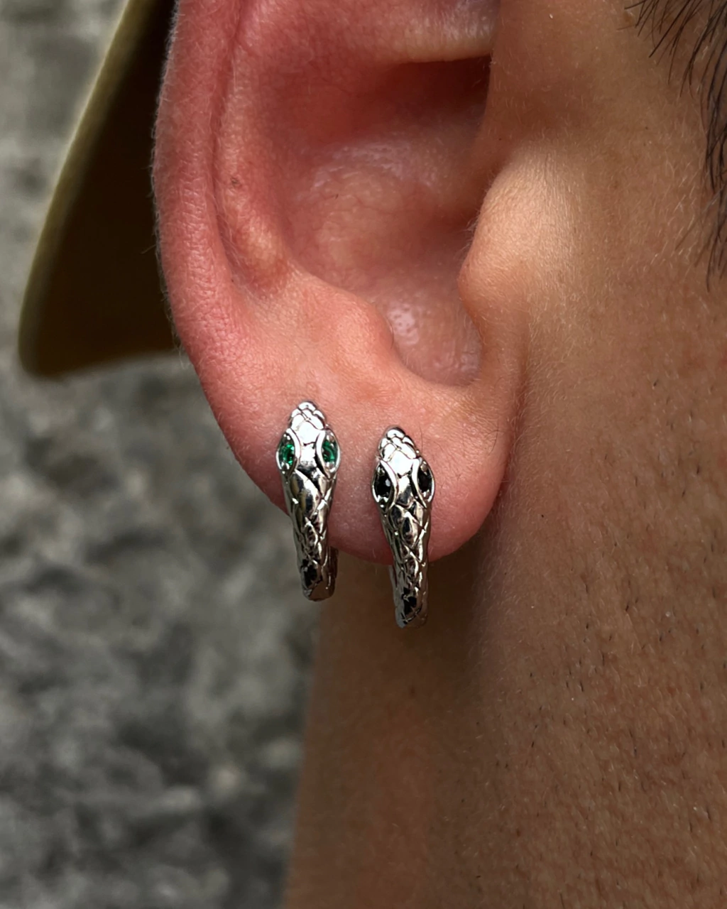 Argolla épica diseño de serpiente con ojos de circonia verdes o nergros.
