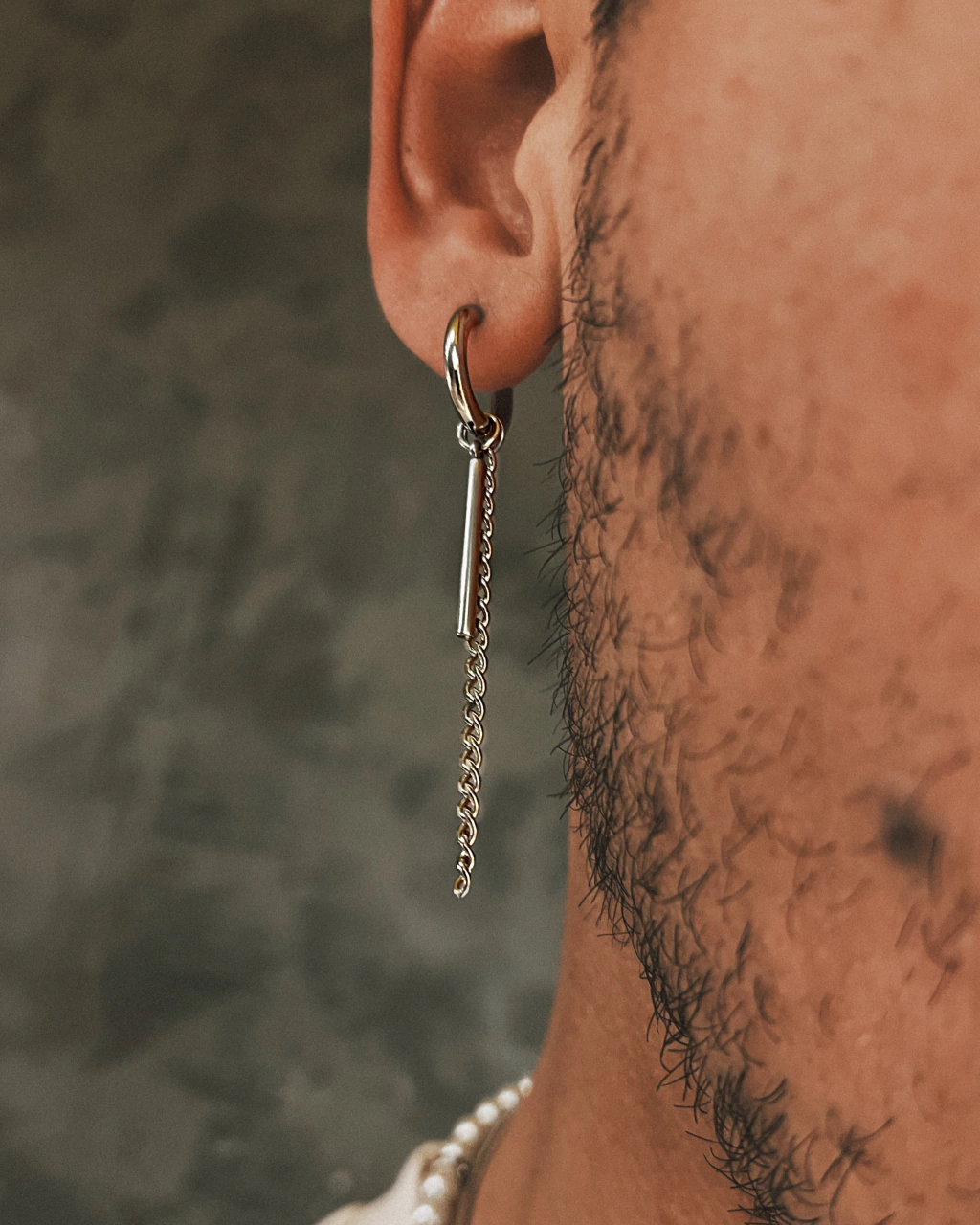 Argolla con barra en acero quirúrgico y cadena colgante. Medida argolla n3.