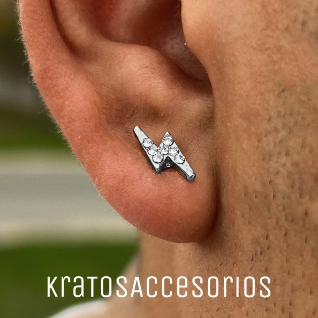 En acero quirúrgico con circonias bañado en oro 18k. Es pasante con traba atrás.