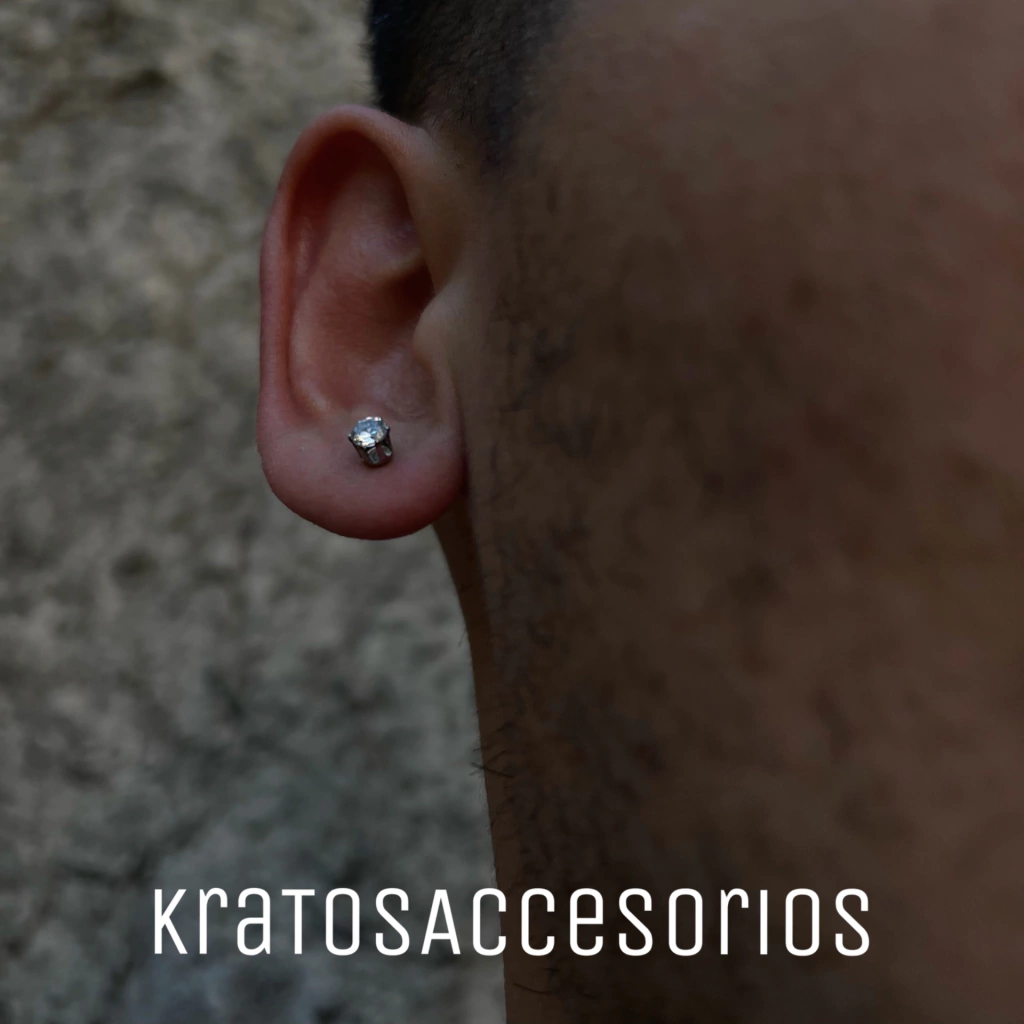 En acero quirúrgico plateado. Es pasante con traba atrás.
