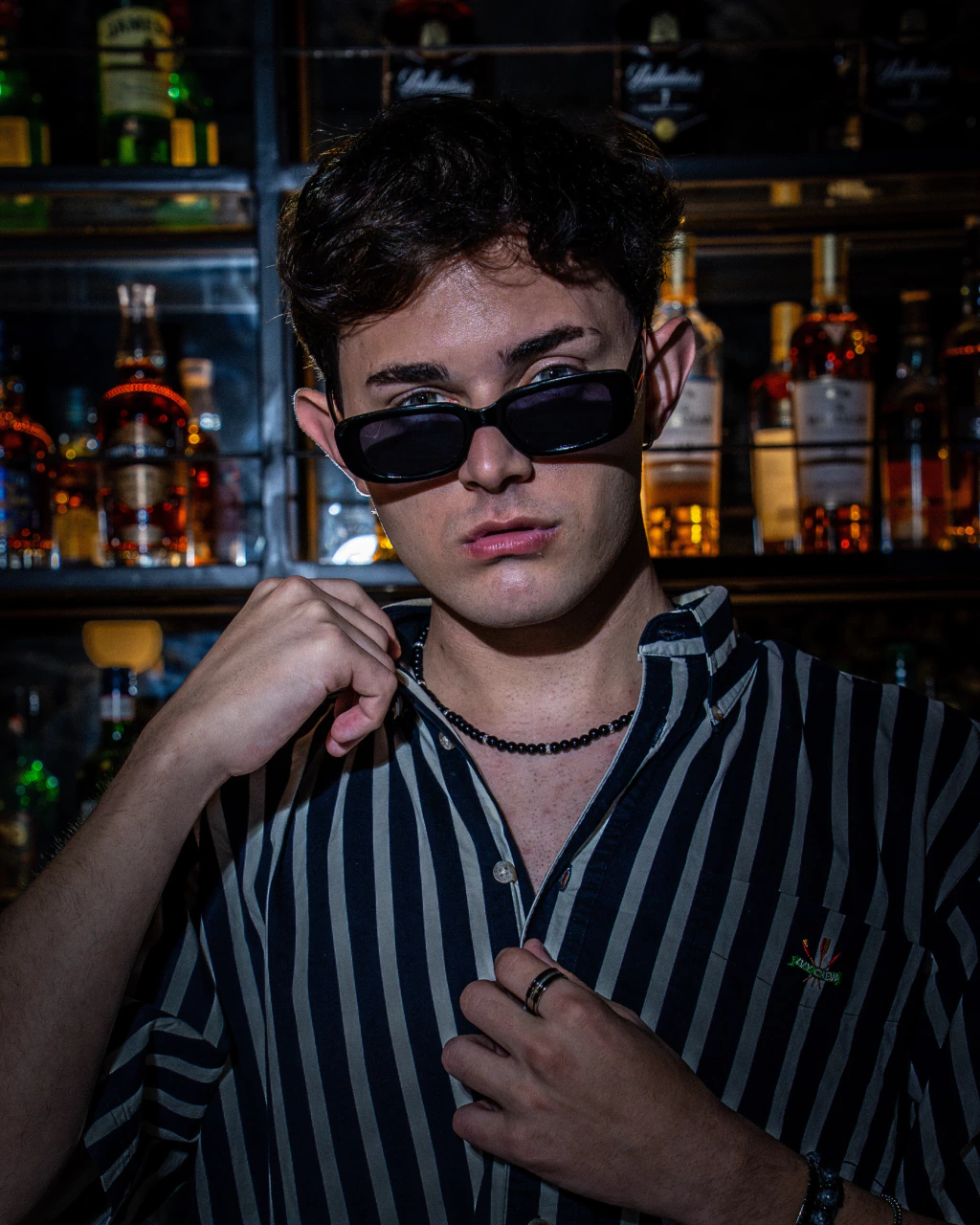 Collar urbano para explotar tu outfit. En piedra natural ónix de 6mm y donas con strass de brillos. Largo aproximado de 48cm.