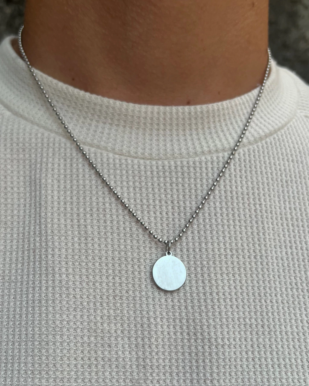 Diseño de cadena de bolitas, con dije en forma redonda.