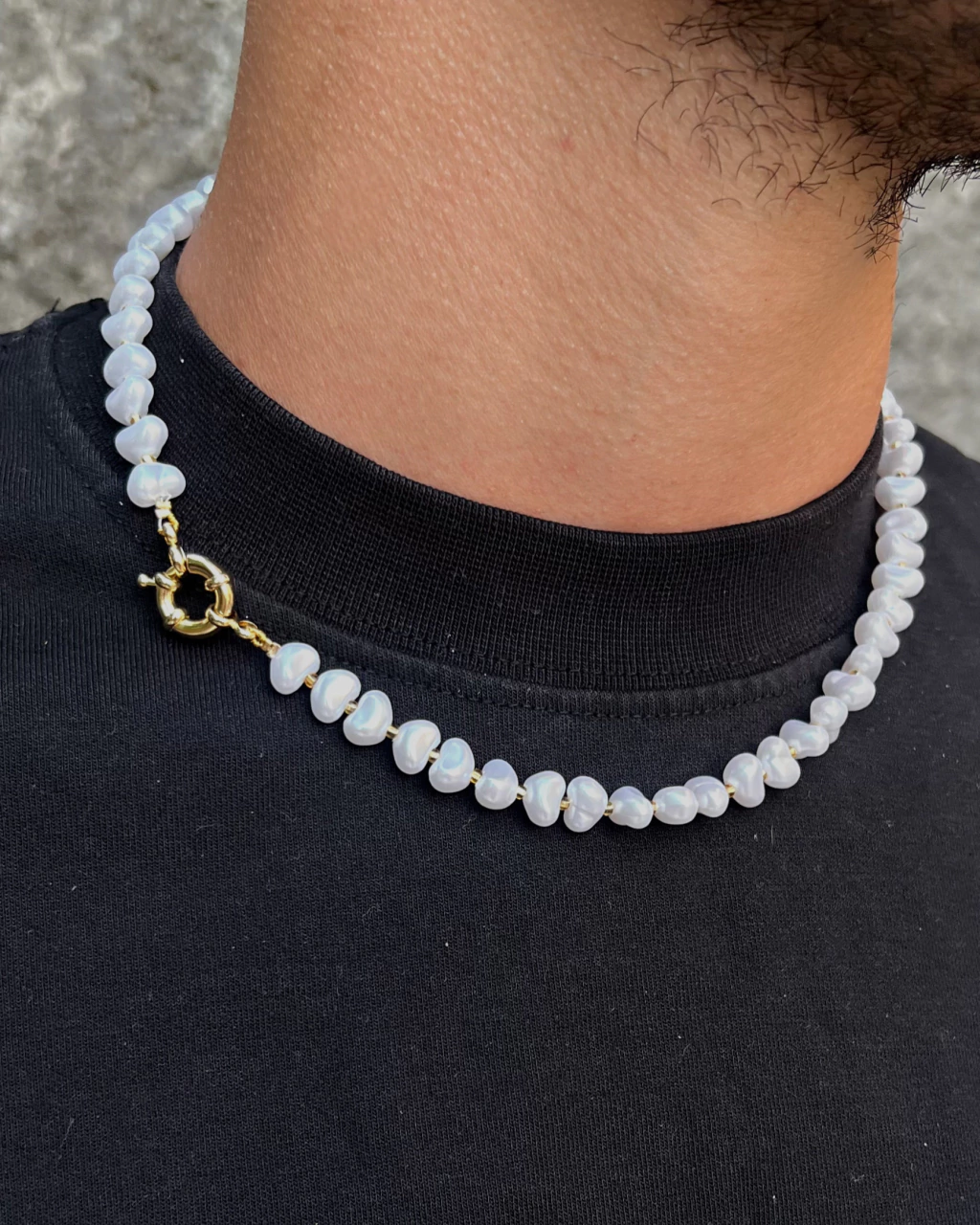 En perlas simil de río de 8 mm blancas con cierre marinero enchapado en oro de 14k para colocarle dijes.