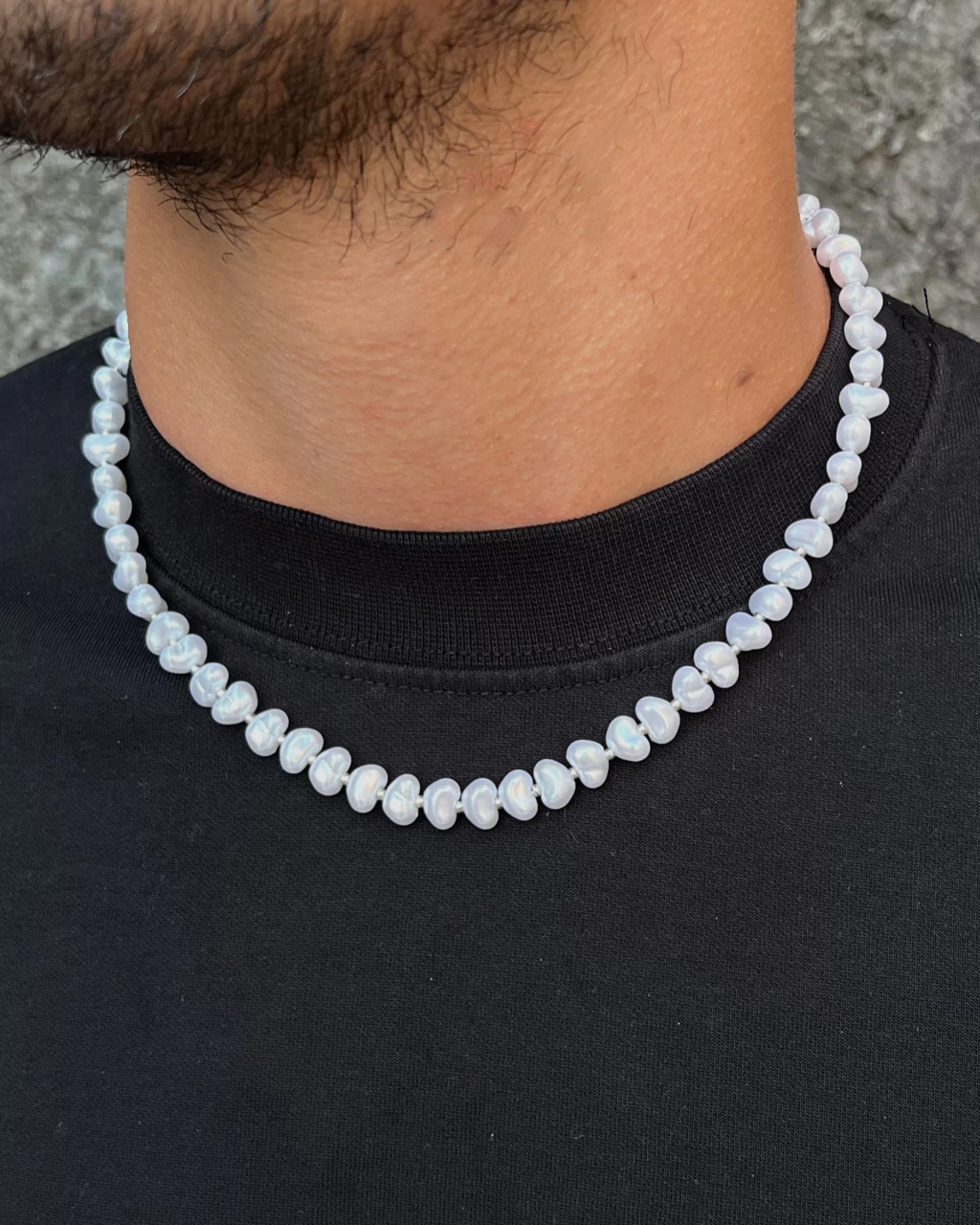 En perlas simil de río de 8 mm blancas con cierre marinero para colocarle dijes.