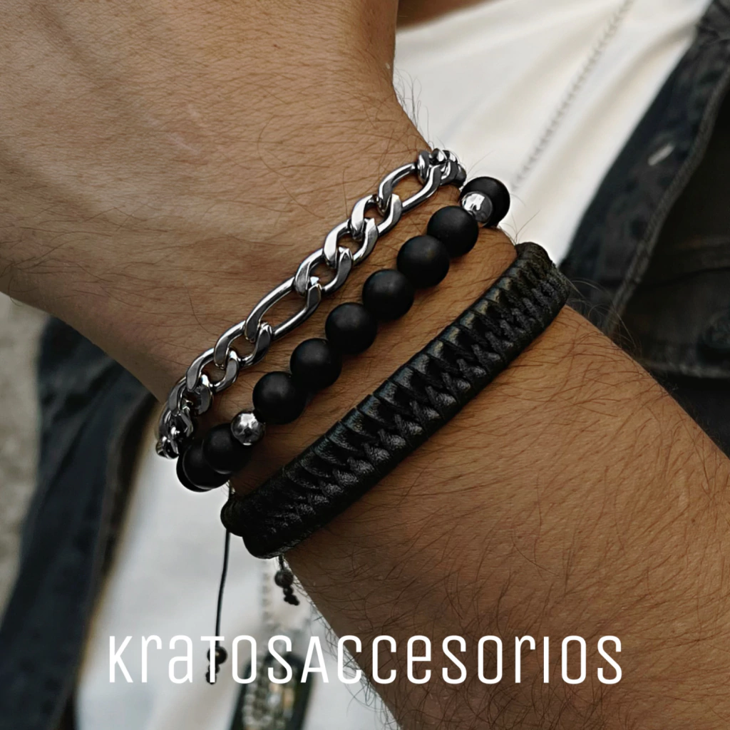 Trenzada negra: cuero genuino de 3mm trenzado en talle único, regulable a todas las muñecas.
