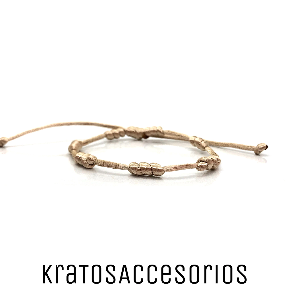 Pulsera en hilo de seda beige regulable compuesta por siete nudos.